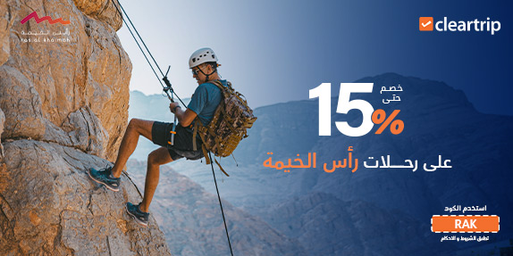 استمتع بخصم يصل إلى 15% على الرحلات والفنادق. استخدم كود RAK وابدأ التخطيط لعطلتك المثالية داخل الإمارات.