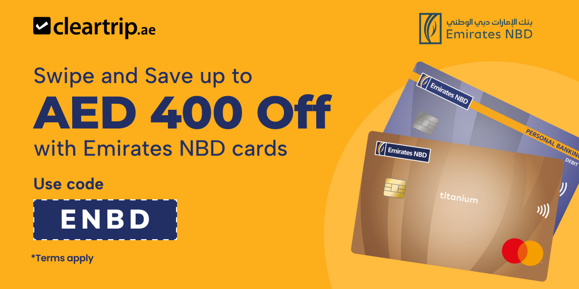 Get AED 400 OFF all international flights. Use code ENBD on your next booking. Traveling with family/friends? Even better! Coz you get a bigger discount.